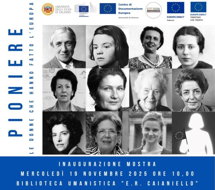 Il Centro di Documentazione Europea (CDE) dell’Università di Salerno promuove l’evento “Pioniere. Le donne che hanno fatto l’Europa”, organizzato in collaborazione con il Centro Bibliotecario di Ateneo, Europe Direct Salerno ed Europe Direct Trentino – CDE Trento. L’iniziativa è realizzata nell’ambito del “Progetto di rete …
